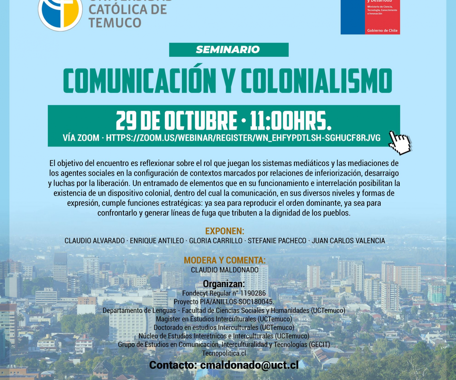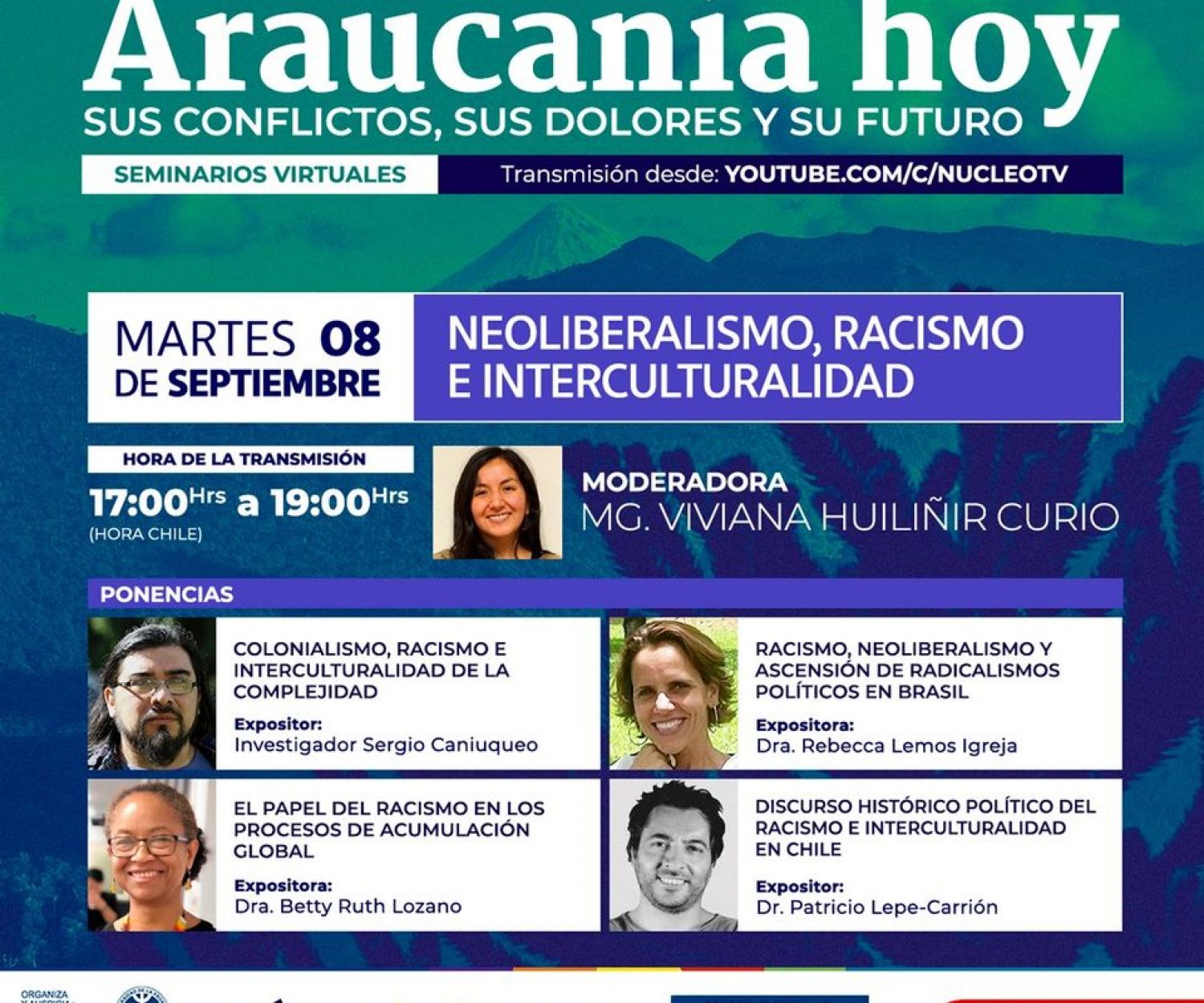 Sin categoría 02 Sep 2020 Seminario Virtual “Neoliberalismo, racismo e interculturalidad”, martes 8 de septiembre Claudio Maldonado