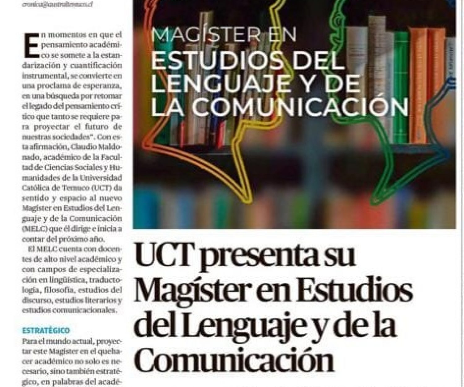 Noticias 08 Dic 2020 UCT presenta su Magíster en estudios del lenguaje y de la comunicación Claudio Maldonado