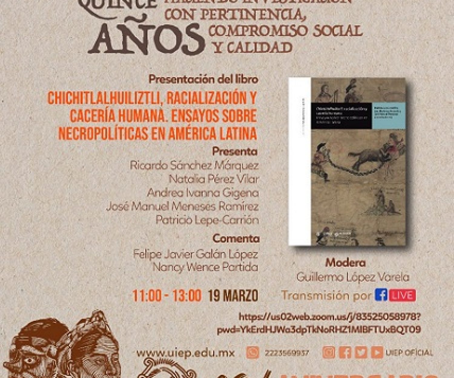 Noticias 19 Mar 2021 Presentación del libro: ChiChitlalhuiliztli, racialización y cacería humana. Ensayos sobre necropolíticas en América Latina Claudio Maldonado