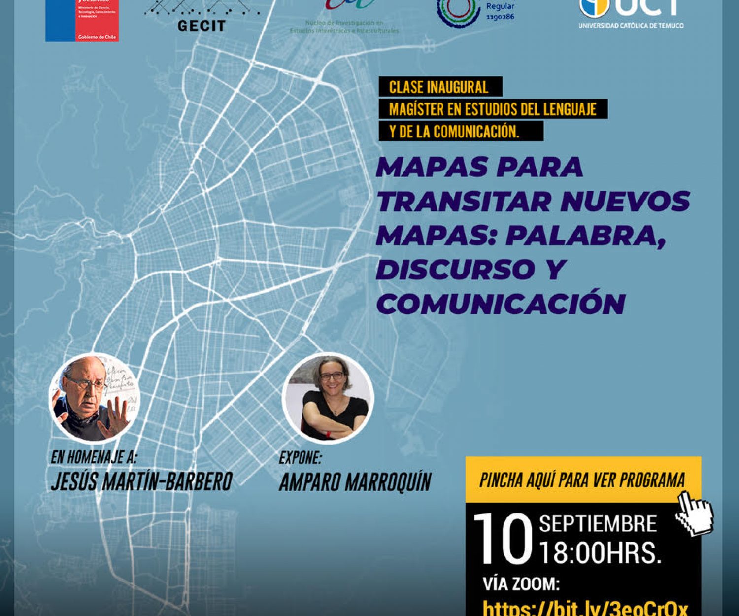 Sin categoría 28 Jul 2021 Clase Inaugural Magíster en Estudios del Lenguaje y de la Comunicación, “Mapas para transitar nuevos mapas: palabra, discurso y comunicación”. El Magíster en Estudios del Lenguaje y de la Comunicación de la Universidad Católica de Temuco, invita a su Clase… Claudio Maldonado