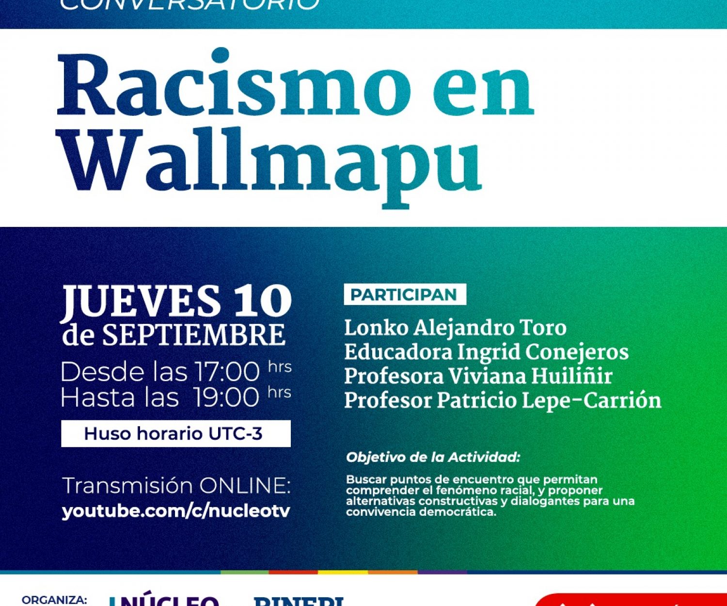 Sin categoría 24 Ago 2020 Conversatorio “Racismo en Wallmapu”, jueves 10 de septiembre Próximo jueves 10 de septiembre admin